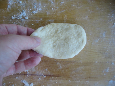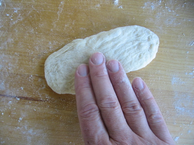 For hamburger buns you just bring down your pin and roll it once into an oval.