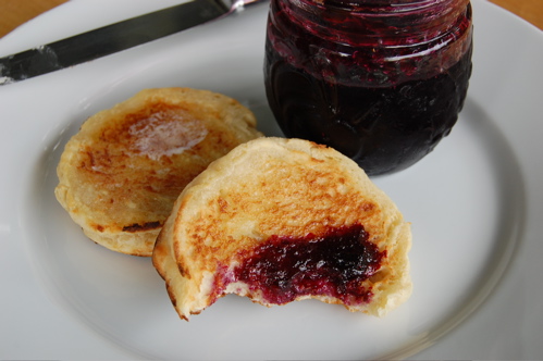 I was quite worried about the muffins not being cooked in the middle so I cooked mine for a lot longer than Joe says and at the lowest temperature my gas burning stove will go. I started them on a room temperature pan and they took almost 30mins: 15mins on the first side then about 12mins after the flip. I also covered the pan for the first 5 mins. They were perfectly browned and perfectly cooked all the way through. Between batches when I am re-greasing the rings I turned off the stove so the pan could not get too hot.