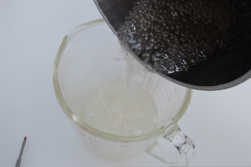 After about 30 seconds or so the whites and sugar should be beaten to a glossy “stiff peak” consistency. Let them sit while you turn your attention to the syrup.