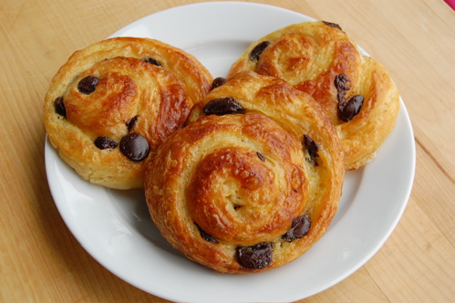 Like classic sweet rolls, these too are fixtures of the Danish counter. The reason (probably), because the shape is so darn versatile. There are chocolate chip snails (like mine above), cinnamon sugar snails, cinnamon sugar and raisin snails, walnut and cinnamon sugar snails, pecan snails, almond filling snails and any-kind-of- jam-you-can-possibly-think-of snails. And none are more difficult to make than any others. In fact the only time I don’t like snails is when bakeries try to pass them off as cinnamon rolls. You can see how they could, especially if they’re made with cinnamon and iced. But true cinnamon rolls are made with brioche, and are their own distinctive pleasure. But I’m here to talk Danish, dernit!