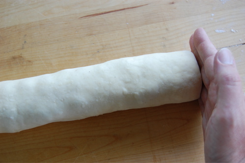 Shore up the ends with your hand and roll the tube back and forth a little to solidify it a bit. The roll should be about an inch-and-a-half to two inches in diameter. If it isn’t, just roll it out with your palms like a baguette until it is. (Don’t forget to shore the ends up again afterward).