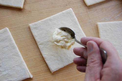 This shape is perhaps the easiest of all the Danish types, being just a simple packet made from a dough square. The filling is simplicity itself, something that I almost always just improvise. The rough proportions are as follows: