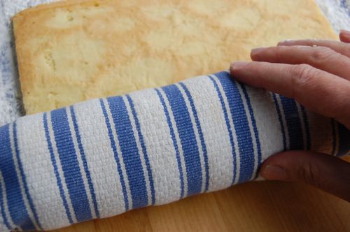 Let the cake sit, rolled in the towel, for 10-15 minutes until cool.