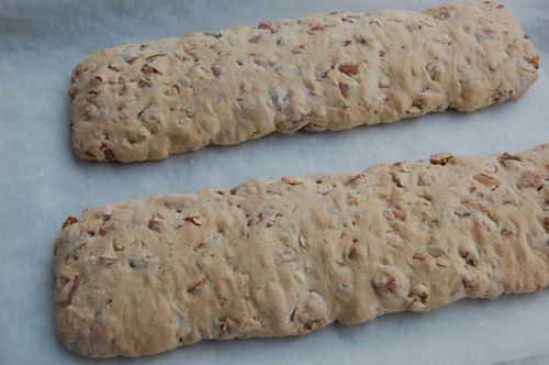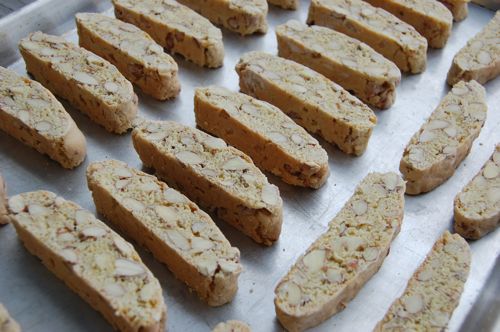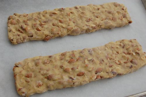 Saturday was Biscotti Day. Did a batch verbatim (with the extra egg). Then did a nut-free version for my mom, with 3 T of almond extract.