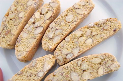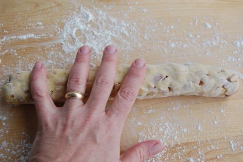 I told you I like a lot of nuts. As you can see, there’s at least as much almond in these biscotti as there is cookie! Truly, you’ll be amazed at how easy biscotti are to make, and how little time they really take.