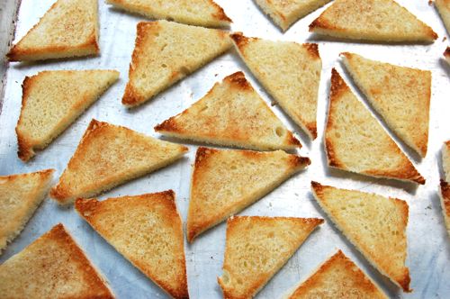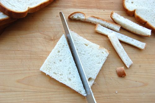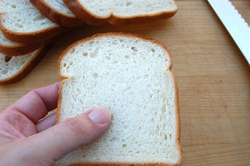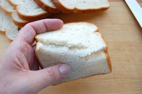 Bread selection is key. You want a tight-crumbed white bread that’s not fluffy like a mass-market bread. You also want it a little stale.