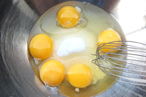 Meanwhile, combine your whole eggs, yolks and sugar in a large bowl…