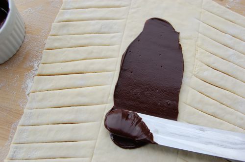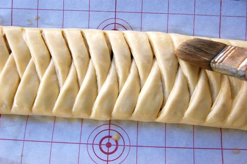 When the pastry is slightly puffy, apply another coat of egg wash, then insert the pan in the oven.