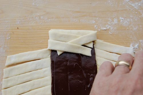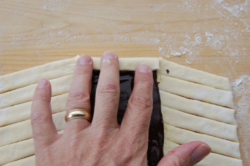 Either you are much, much faster at putting this thing together than I am, or you have spatula hands – I’m afraid I deformed my braid when transferring it to a cookie sheet (it had gotten pretty soft). I’m sure it’s still going to be delicious, but is there any harm to constructing the thing on parchment to make the transfer easier?
