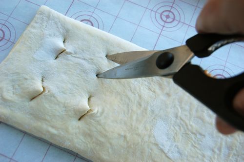 Now, using a pair or kitchen shears, snip steam vents in the top layer of dough. The pattern is up to you.