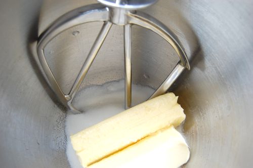Kinda yucky? Stay with me, it gets better. Combine two sticks (8 ounces) of butter and 7 ounces of granulated or powdered sugar in the bowl of a mixer fitted with the beater. Back in the day, truly resource-poor homemakers used half shortening. Unless you’re a stickler for authenticity, there’s no need to do that.