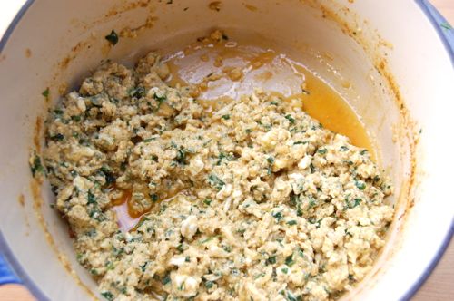 Then the chicken & egg mixture.