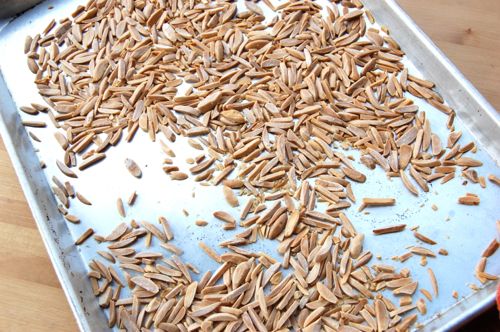 Toast the whole or slivered almonds in a 400 oven for about ten minutes. Get a nice tan on them.