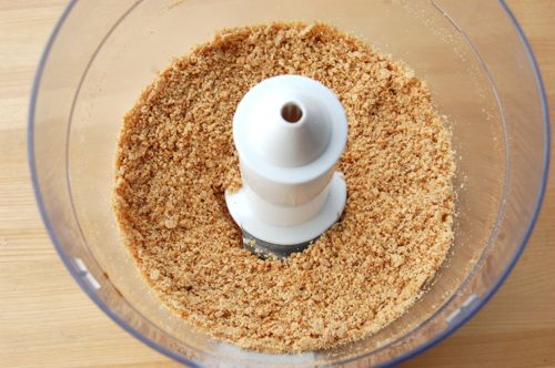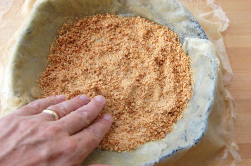 …and grind to a crumbly texture. There, that’s done. Time to assemble! Turn the oven down to 375.