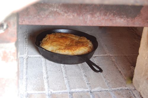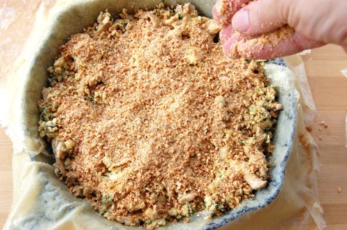 Put that in your oven — a brick oven is fun to use for this, say, if you’ve baked bread earlier in the day and it’s been cooling down. The nice thing about bastilla is that you don’t really have to worry about doneness all that much. The ingredients are all pre-cooked. All that really needs to happen is for the pastry to brown.
