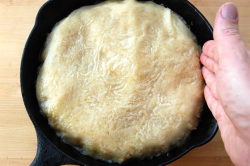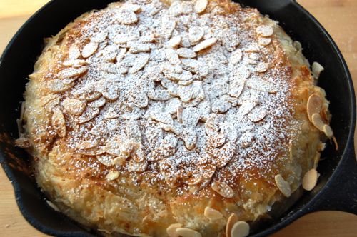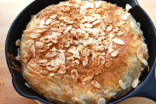 Done! Serve this slightly warm or at room temperature. You can transfer the bastilla to a serving dish or go the rustic route and serve it straight from the pan. It doesn’t slice terribly well, but then in Morocco you’d just scoop some up and eat it by hand in the Arab style. The manner in which it makes it to your mouth isn’t very important, so long as it gets there.
