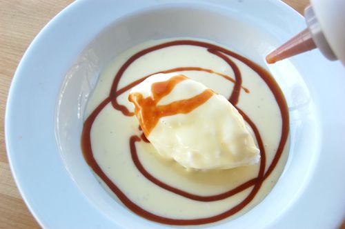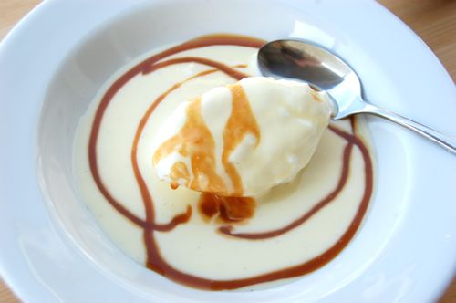 To assemble, simply place an island on a plate and spoon over the chilled crème anglaise.