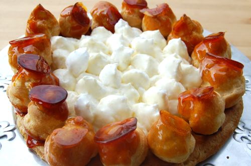 my GOD that’s good. Gâteau St. Honoré is that pastry. Yes, you may think you know what it tastes like: cream puff dough, pastry cream, meringue and caramel. But I’m telling you friends, until you actually prepare and serve one of these you won’t understand the impact that all those components can have when they’re delivered together. The uninitiated are always, always stunned.