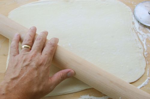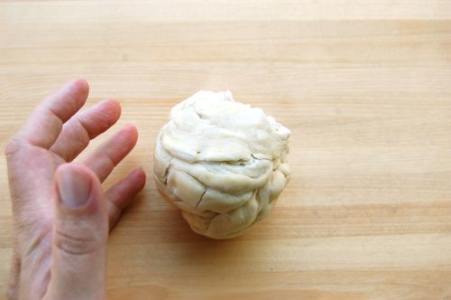 Here I have about a ten-ounce ball of puff pastry scraps that I’ve been keeping in my freezer (they’re thawed of course). You can use an equal amount of non-scrap homemade puff pastry or store-bought puff pastry.