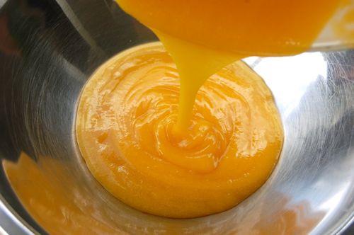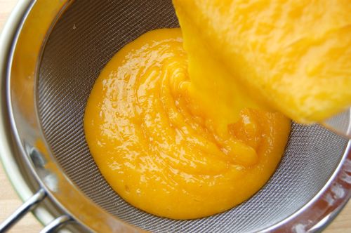 I made this recipe using just the puree part. But every time the puree would turn brownish or dull in color. It tasted good but the color was not nice to look at, as a result my cheese cake did not look good either. After a while it struck me, I could use wilton orange food coloring (it is the coloring that I use to color butter creams, frosting, cakes and cupcakes. Just a tiny amount of wilton orange food coloring. The puree color change from dull, murky brown to beautiful subtle orange and it worked. It looked and tasted similar to the puree from the super market. In a country where mango is abundant during summer time, I would like to make my own fresh puree, with fresh mangoes and use it on mange cheese cakes and mange cheese tarts.