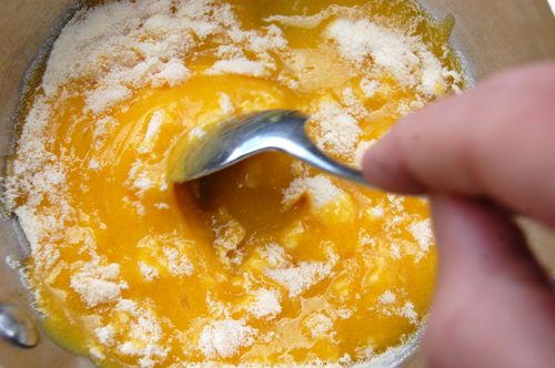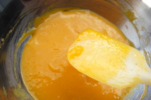 Pour the mixture, along with the rest of the purée, into a medium bowl and whisk it together thoroughly. Allow this to sit at room temperature while you whip the cream.