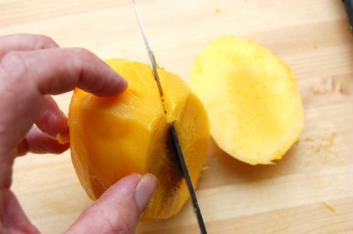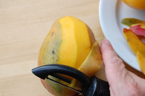Posting from Hawai’i, mango country. You can extract the flesh from the mango more easily if you don’t peel. There’s a good set of instructions, with pix, at: