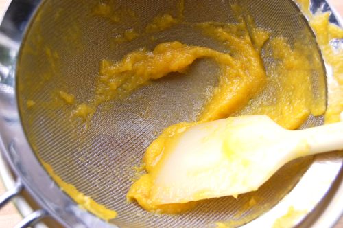 …and using a spatula, press it through until you have nothing but about a tablespoon of fruit fibers left. This step will take you 5-10 minutes, but you want to take the time, trust me.