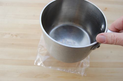 Now apply a sturdy object to the ball — a small saucepan was handy for me — and press it.