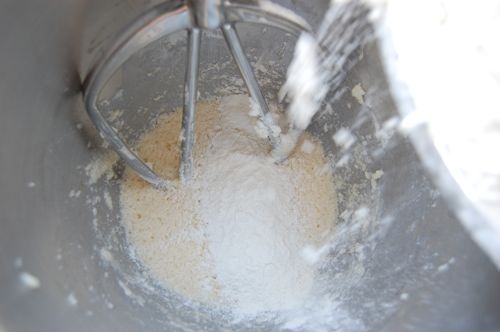 The mixture may look a little rough and lumpy, but proceed undeterred. Steadily sprinkle in the flour mixture and beat on medium-low to combine.