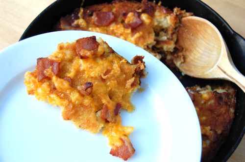 I wonder if this could be turned into a sweet “dessert” version, sans bacon and cheese with maybe a bit mor sugar/honey and added dried fruits. A baked corn-porridge so to say.
