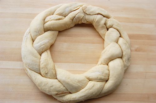 Bring the ends around to form a circle and squeeze the ends together. I’m not a great braider as you can see, but an imperfect braid will still make a lovely cake.
