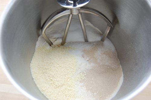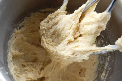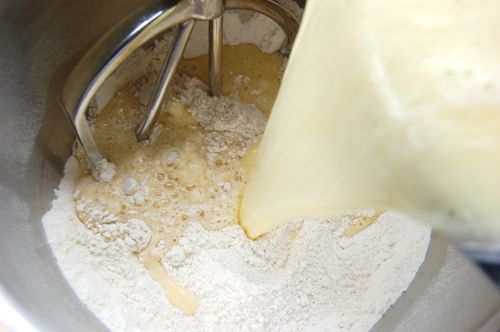 Stir until everything is moistened, then switch to the dough hook.