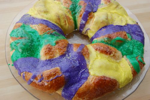 I made a king cake this year – but did it the cheaters way. I used store-bought bread dough ( I know! I know!) But it came out beautiful, and tasted darn good. Next year I will do it the right way!