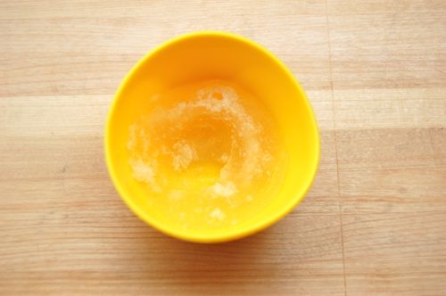 To use it you need to melt it. Zap your little silicone Trudeau bowl — if you have one — in the microwave. Use short full-power bursts of 5 seconds. That should be all you need to liquify it.