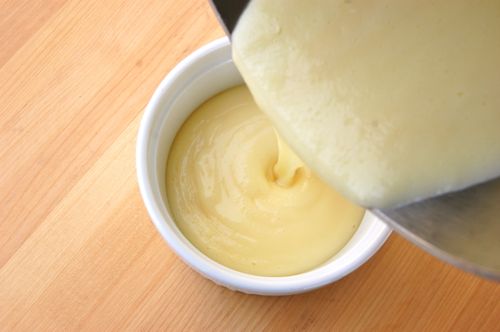 Everyone should have a simple stirred custard recipe handy. In America we call this sort of cornstarch-thickened mixture “pudding.” It’s terrific for eating just as it is, but it can also be used as a thick sauce for, well, whatever. This recipe is sort of a “pastry cream light.” It’s not as sweet as most pastry creams, nor as rich in cream or egg yolks, but it does have a dab of butter for sheen.
