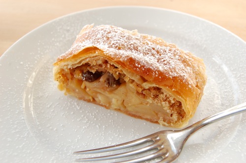 There’s a reason strudel has been consistently popular all over continental Europe for more than three hundred years: it’s pure, delicious comfort. It’s also fun to make, even when you count in the intimidation factor. The fear keeps you focused like a laser, and makes the exhilaration of baking up your completed roll tat much sweeter. Even more so than with a “fancy pastry”, you walk away from the strudel baking experience with a swagger. Oh yeah — baker in the house!
