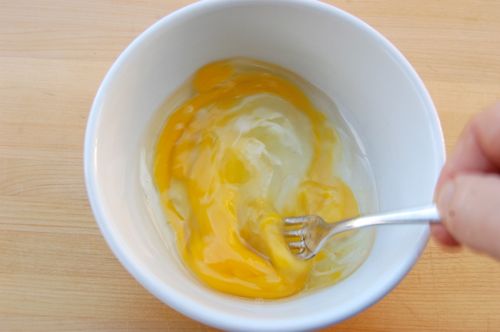 Now for the dough. Beat together the eggs and the oil.