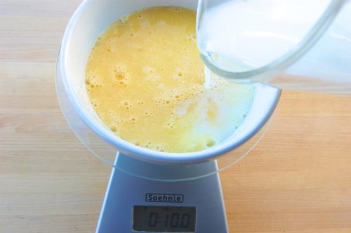 Put the bowl on a digital scale and add milk until you have 10 ounces total. You can also do this in a clear measuring cup, adding enough milk until you have 1 1/4 cups.