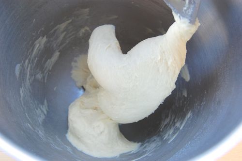 Knead the dough for about another 2-3 minutes until it becomes very smooth and stretchy. It’ll be tacky to the touch but shouldn’t actually stick to your fingers. If it leaves bits of dough on your fingers when you handle it, knead in another tablespoon or two of flour.