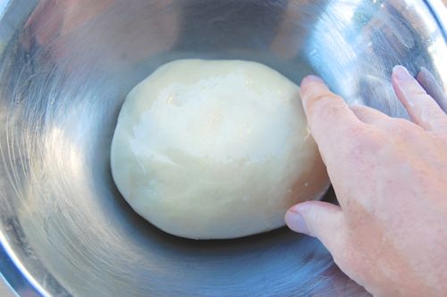 At this point it’s traditional whack the dough on the counter exactly 100 times. If you feel like doing that for tradition’s sake, by all means do so. It’s fun but it’s not at all necessary. Form it into a ball and put it in a lightly oiled bowl (roll it over once or twice to coat it). Let it sit at room temperature for 1-2 hours.