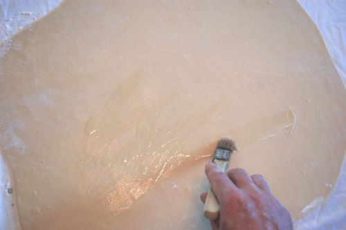 Next, re-butter the whole sheet. Gosh I wish I could find my bigger brush!