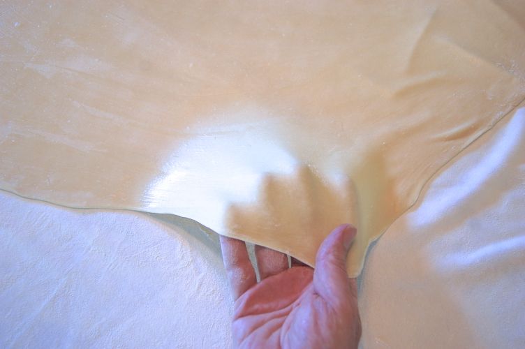 I’ve never handled a yeast dough that’s this thin, to be honest. However my feeling is that since it’s yeasted and will have some gas pockets inside, it won’t be as flexible. I have a feeling you’re in for more rolling than stretching on that. Hmm…you know, I should probably just make it in the next week or two to find out. Think?