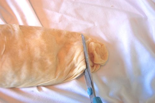 Now trim any spare dough off the ends, leaving two inches or so, then tuck the spare dough underneath.