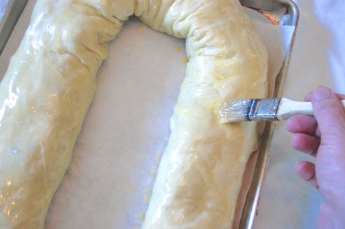 Paint on some egg wash or simply butter if your prefer. Rest the whole pastry for about 15-20 minutes (again, especially if you’re a New Worlder) to relax the gluten and minimize cracking.