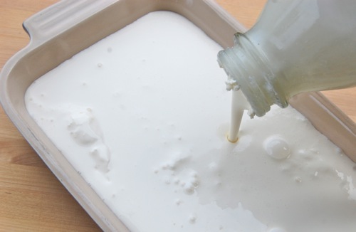 So I just skim off the big, firm clots and keep them in a bowl until I need them. The remainder I’ll strain and use as half-and-half in, well, whatever. Store this for a week or more tightly covered to prevent odors or off flavors from getting in.