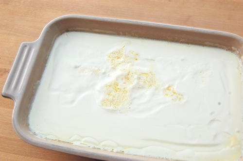 What’s going to happen in that time? Well, the steady low heat of the oven is going to encourage all the tiny fat globules in the cream to rise. As they do they’ll bunch up — though not combine with one another — to make a huge, thick mass.