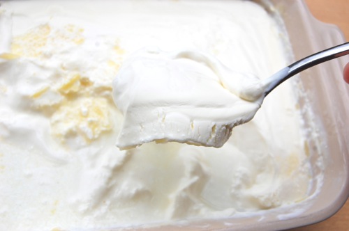 I made this last weekend using store bought whipping cream and it turned out good, but the top layer was really sticky and slightly rubbery almost. I added some of the “milk” that was under the cream to make it less sticky and more spreadable. That worked really well.