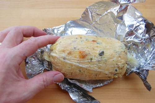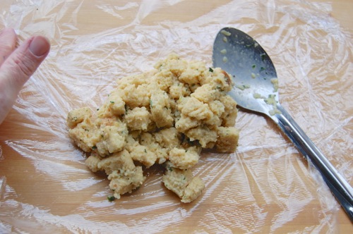 Of all the many uses for stale bread, napkin dumplings rank near the top. I remember the first time I was served these in a Bohemian restaurant in Berwyn, Illinois. I thought: where have these been all my life? Then immediately after that: please pass the gravy. Napkin dumplings are called napkin dumplings because they’re traditionally boiled in napkins. Here’s I’m using plastic wrap and foil, but honestly I think the traditional napkin method may be superior for reasons you’ll soon see.
