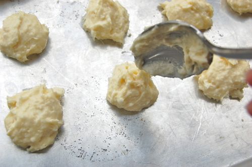 Spoon the mixture onto an un-greased sheet pan, about two tablespoons per dollop.