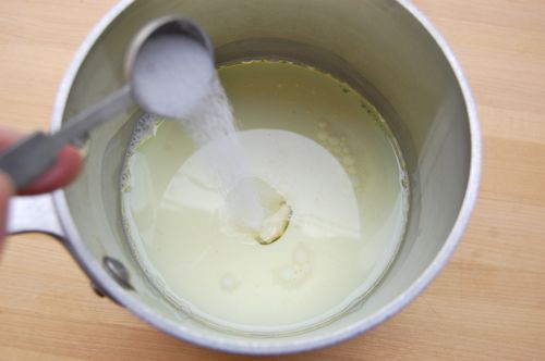 Traditionally they’re made using a semi-firm cheese from Brazil called Minas. That cheese is nigh impossible to get here in the States. Parmesan is commonly used as a substitute, but Mexican Cojita is far closer in flavor and can be found at most Mexican markets. But really any semi-firm cheese will work. Below I used Manchego and the results were fantastic. Anyway, begin by preheating your oven to 375 degrees Fahrenheit. Combine the water, milk and oil in a small saucepan.